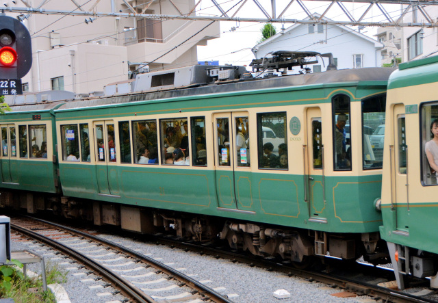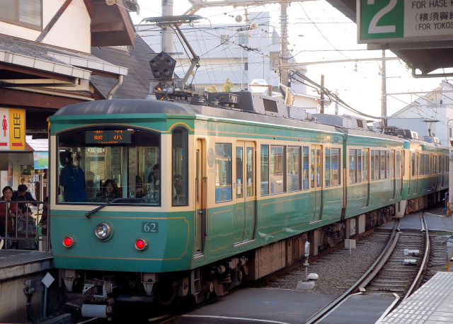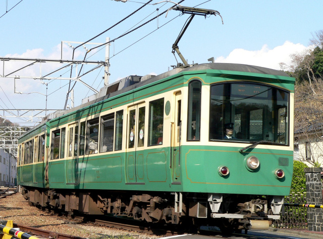 10形との違いはクリームと緑の「江ノ電カラー」になったこととダブルルーフ風のカバーがなくなったことなどがあげられます。